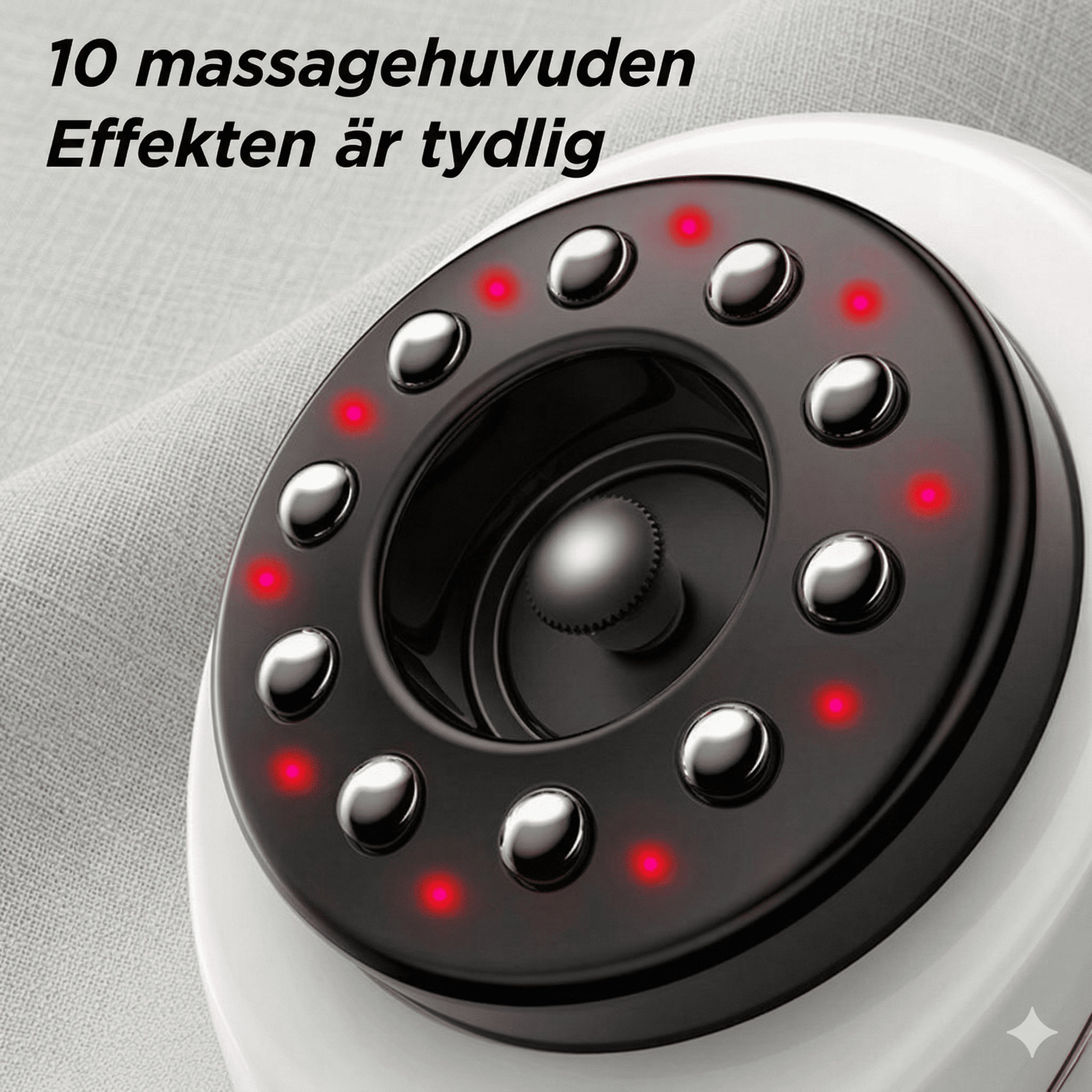 Det handhållna formatet gör det enkelt att nå lår, skinkor, mage, midja, rygg och armar — de vanligaste problemområdena för celluliter. Bekvämt att hålla, lätt att styra, effektivt att använda.
