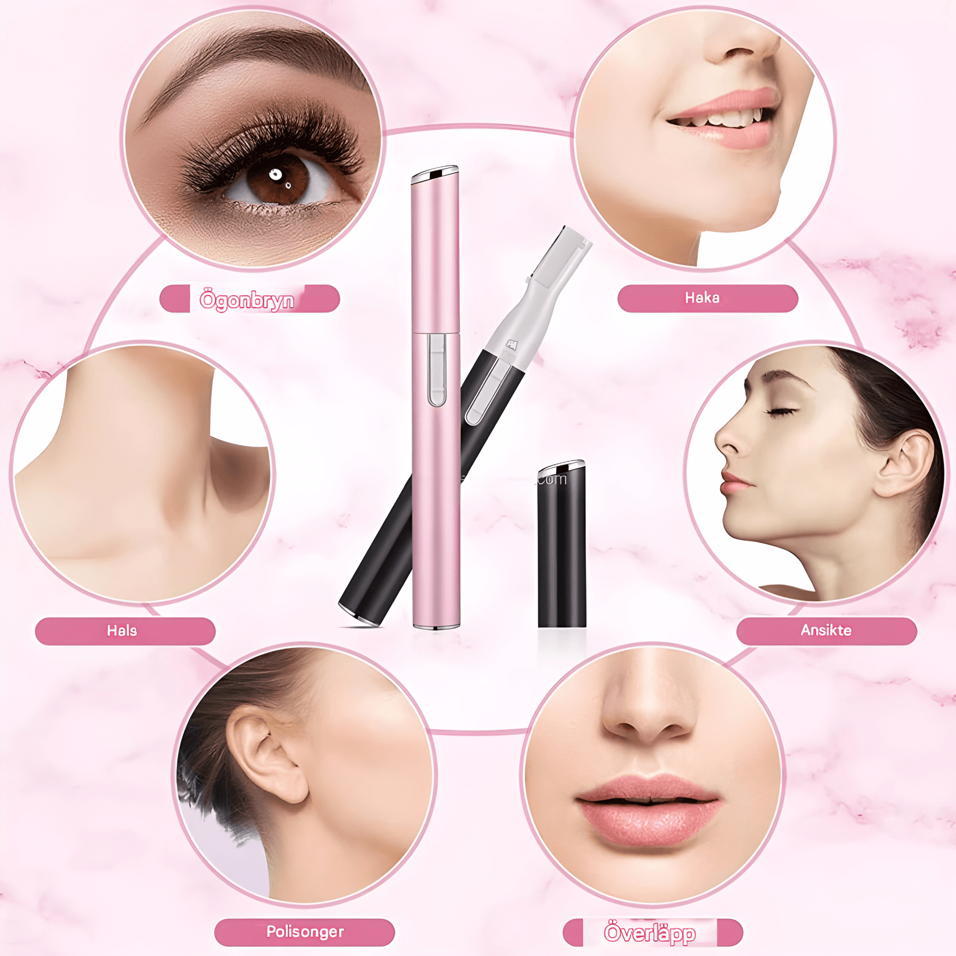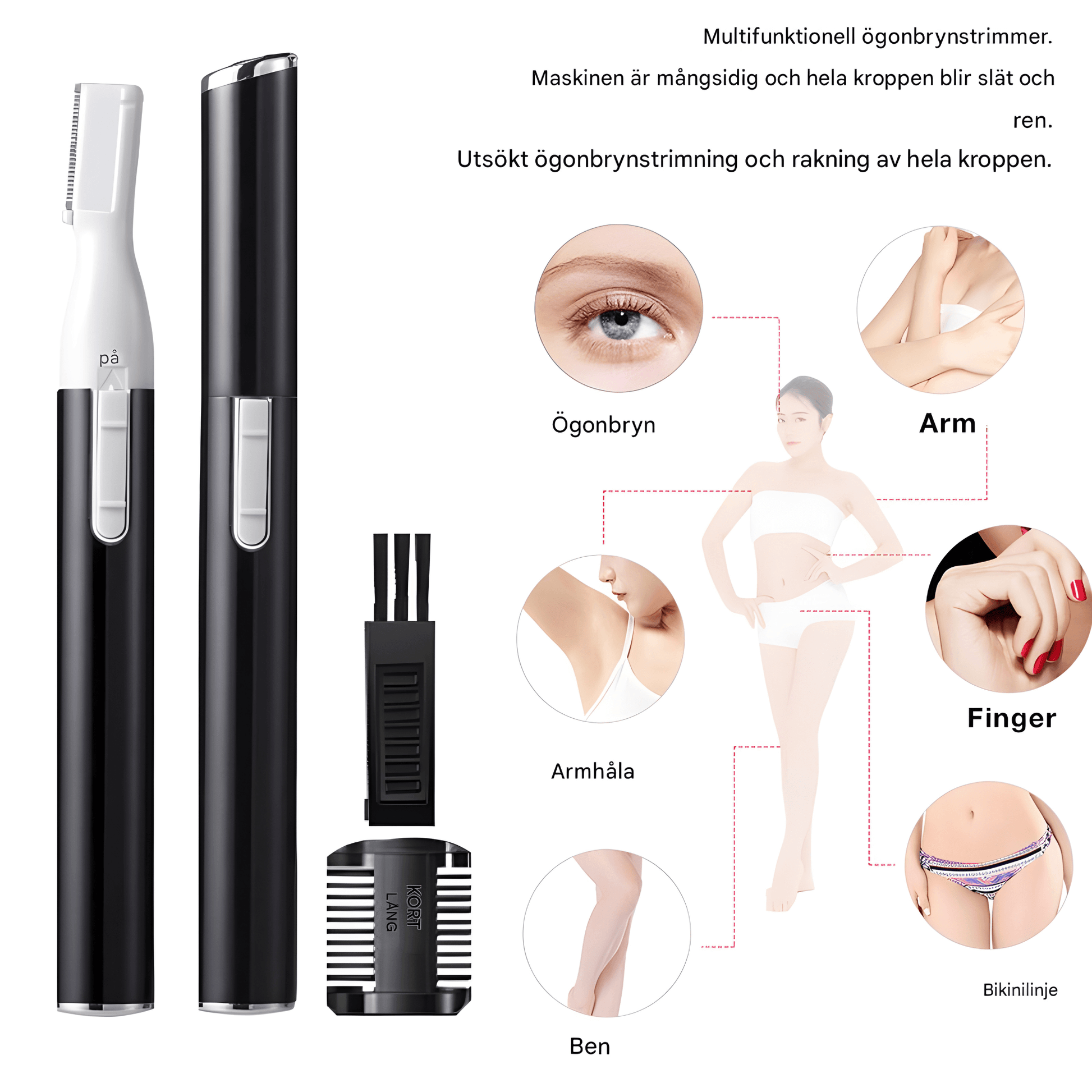 | Användningsområden | Ögonbryn, haka, överläpp, nacke, armhåla, bikinilinje |