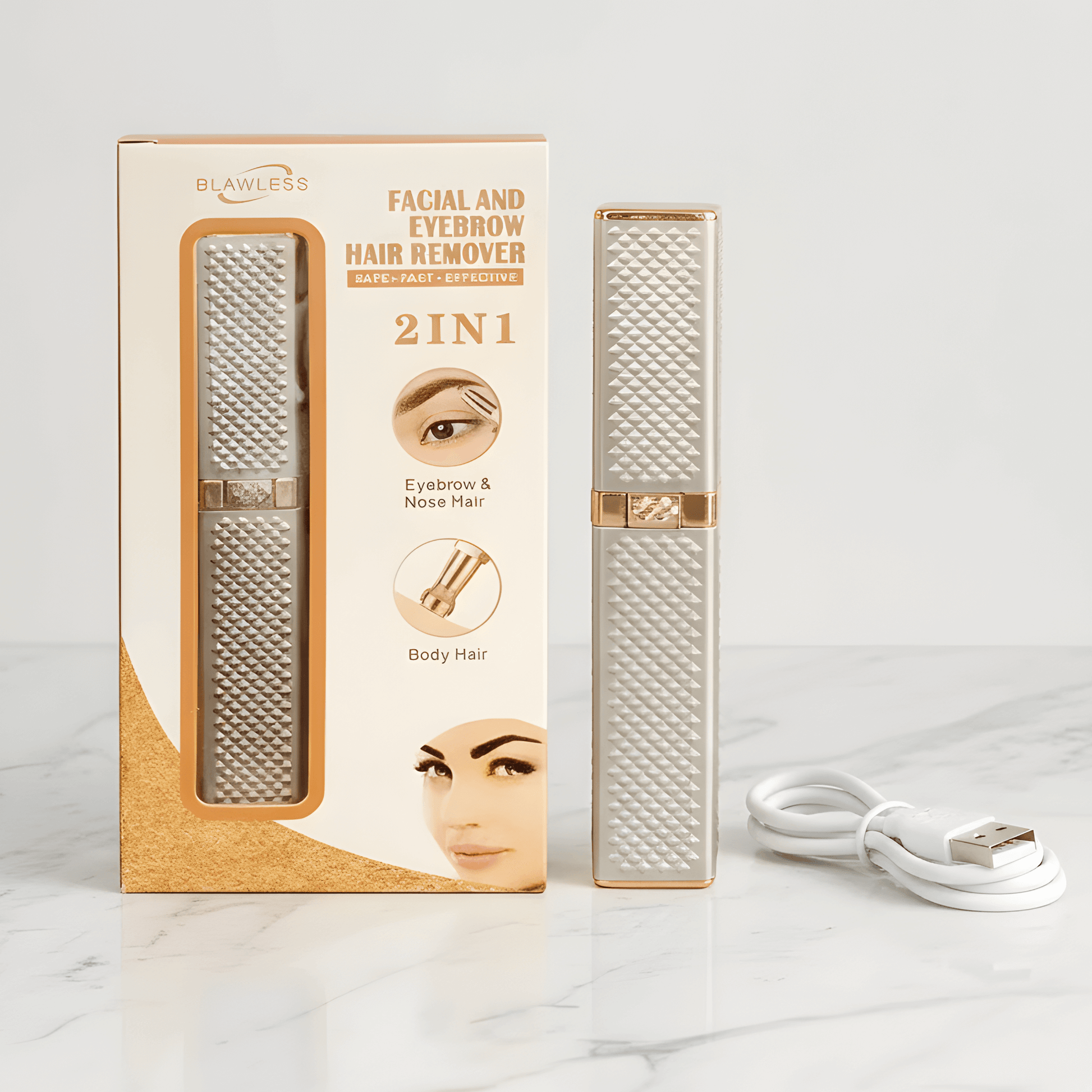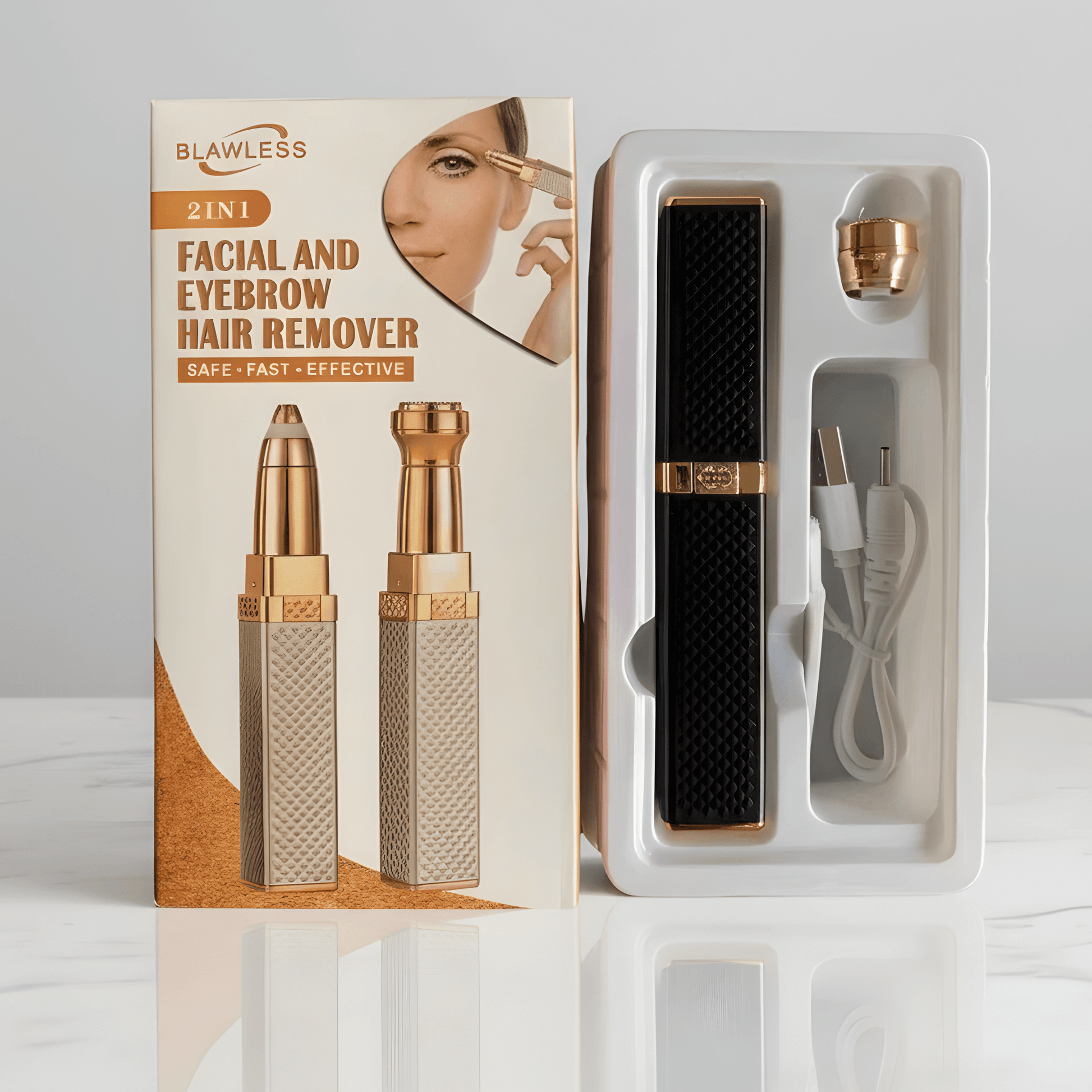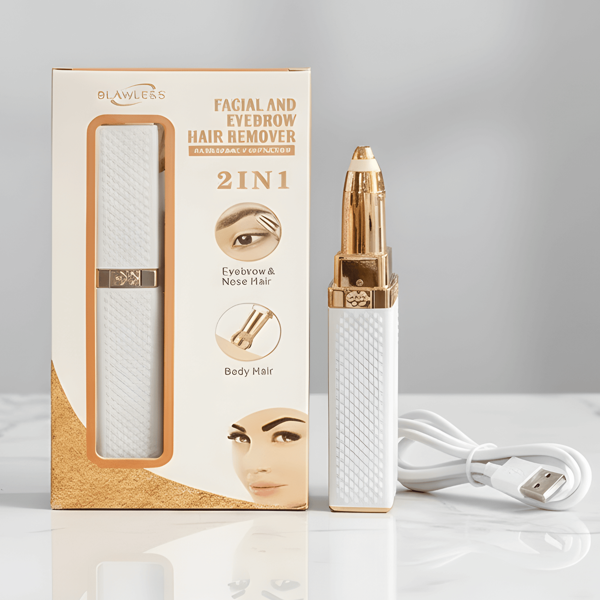 SofiGlow – 2-i-1 Elektrisk Epilator & Ansiktstrimmer för Kvinnor med Inbyggt Ljus & 18K Guldpläterat Huvud